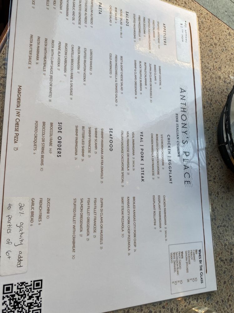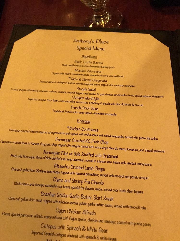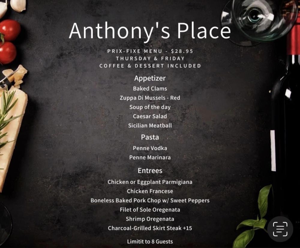 Introducing Anthony's Place, an Italian restaurant in Brooklyn, NY, offering a wide range of amenities such as delivery, takeout, vegan and vegetarian options, wheelchair accessibility, and more. The menu features appetizers like Beet and Goat Cheese Salad, entrees such as Chicken Marsala, and pasta dishes like Pasta Alfredo. Customers rave about the warm atmosphere, delicious food, and attentive staff. Reviews highlight the flavorful dishes like Shrimp Oreganata and the impeccable service. Whether you're looking for a casual meal or a special dining experience, Anthony's Place is a must-visit destination for Italian cuisine lovers in Brooklyn.
